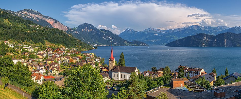 Umgeben von vier Kantonen - daher der Name - liegt der Vierwaldstättersee eingebettet in einem wunderschönen Bergpanorama. Wir fahren entlang der fjordartigen Ufer mit tollen Ausblicken nach Küssnacht. Natürlich schauen wir in die Hohle Gasse, denn - frei nach Wilhelm Tell - muss er durch diese kommen …