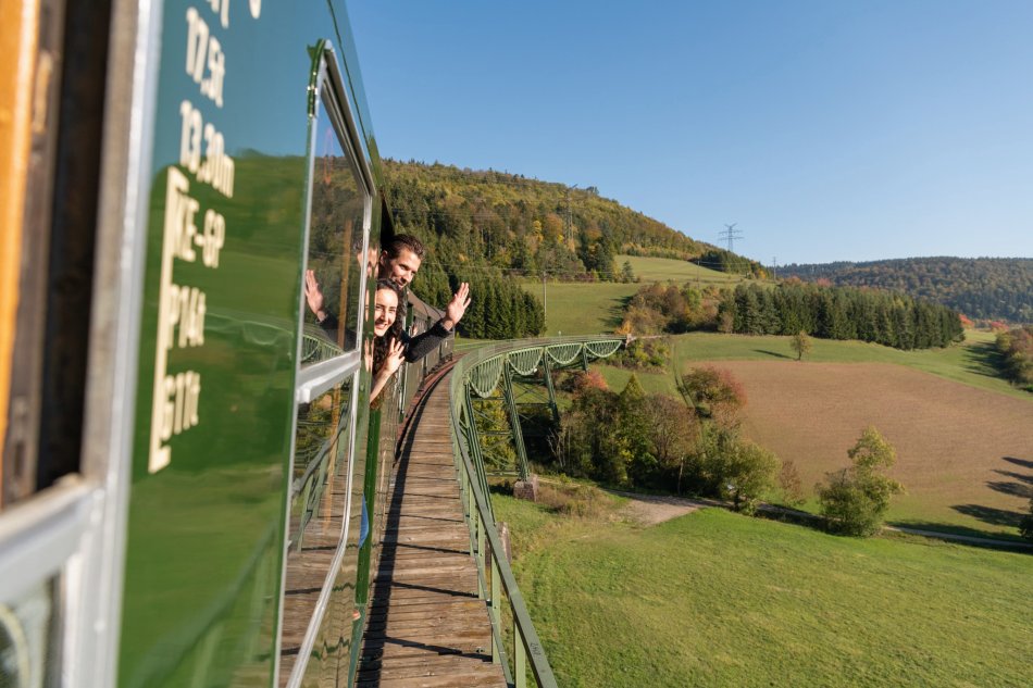 Einsteigen und los geht’s! Wie es sich für eine echte Museumsbahn gehört, tuckern wir in historischen Waggons durch die zauberhafte Landschaft des Südschwarzwaldes mit seinen idyllischen Dörfern. Bei klarer Sicht genießen wir fantastische Ausblicke – und mit etwas Glück sogar bis zu den Alpen! Unser nächstes Ziel ist Donaueschingen, die Residenzstadt am Ursprung der Donau. Im Schlosspark sprudelt hier die berühmte Donauquelle, gespeist von Regenwasser, das tief unter dem Schwarzwald geflossen ist und hier ans Tageslicht tritt. Von hier macht sich die Donau auf ihre lange Reise bis zum Schwarzen Meer.