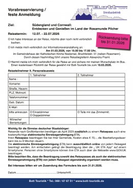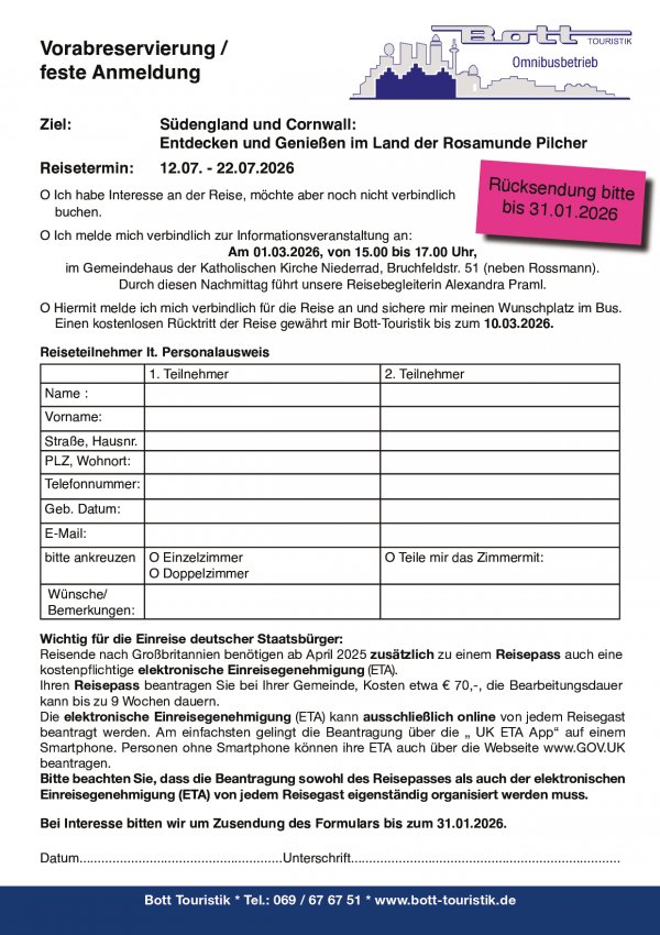 Homepage www.bott-touristik.de Um Anmeldung wird gebeten!